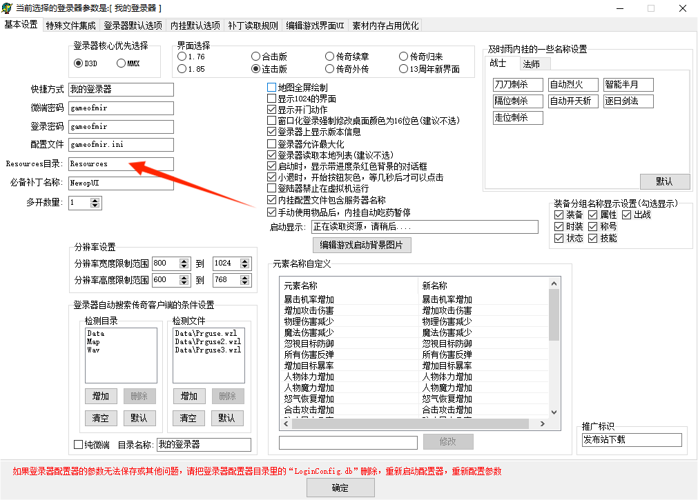 选择传奇归来,配置后的登陆器必须放入传奇归来客户端里才能正常游戏